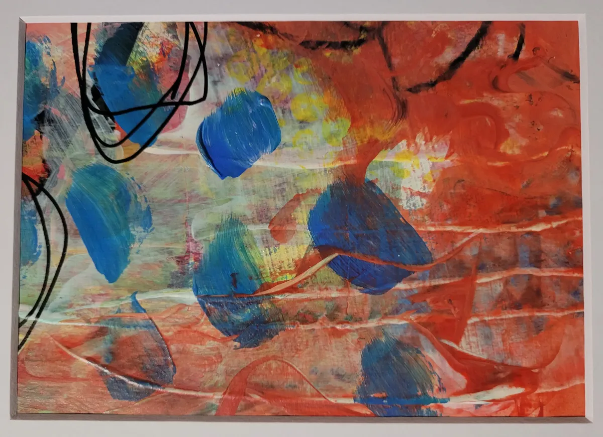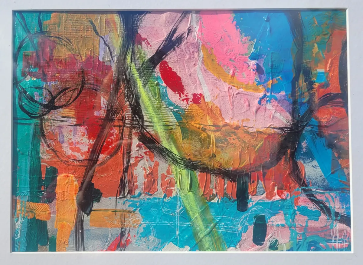 I'm an artist and writer based in East Devon, a colourist and abstract painter who works intuitively, letting each painting emerge in its own time. I collect inspiration like a magpie and translate it onto paper and canvas using expressive marks, bold colour, and unconventional tools.